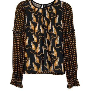 Bl^nk London Black Yellow Leopard Brienz Pullover Blouse Top XS