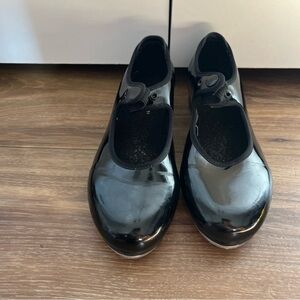 Bloch Girls Dance Tap Shoes Size 1 1/2 M Black Shiny Techno Tap