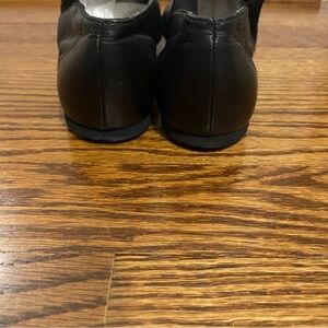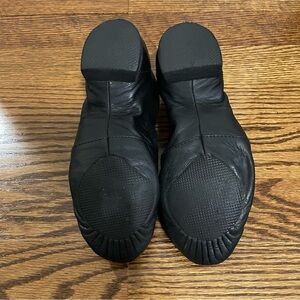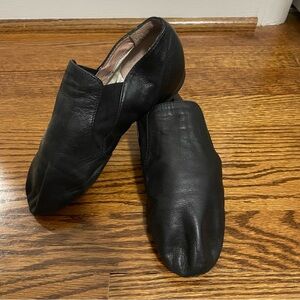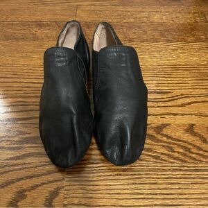 These are Bloch brand slip on jazz shoes in black leather. They are a comfortable and flexible dance shoe. These shoes are a size 3.5 and are in great condition.