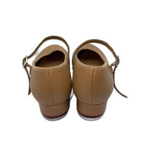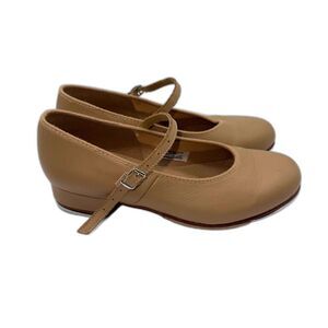 Bloch Tap On Woman's Tap Shoe In Tan Leather - 7. This item is pre-owned in excellent condition. Light creasing and scratches on the metal from wear. See pics.