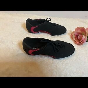 Breathable mesh panels . Color black & hot pink , size 4 1/2