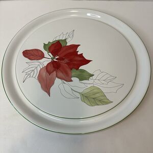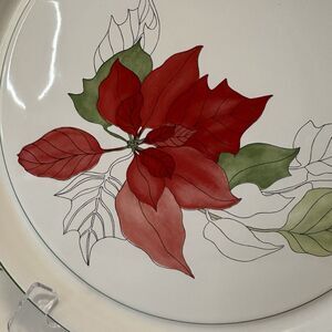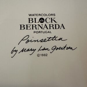 Block Bernarda Watercolors Red Poinsettia, Cake Plate, Mary Lou Goertzen, Serving platter, VINTAGE