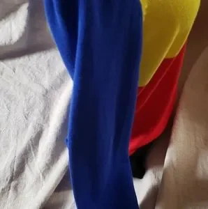 Eye popping colors perfect for this time of year. Nice color combinations give you infinite style possibilities. A true statement piece. Have 2 available. The colors are blue, red, yellow and black.