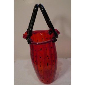 Block Crystal Blown Glass Strawberry Jennifer Evening Bag Purse Red Black Vase