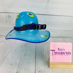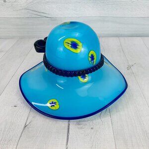 Add a touch of vibrant elegance to your home décor with this stunning Block Crystal "Kimberly" Hat sculpture. Crafted in 2005, this piece is mouth-blown and hand-polished, showcasing a striking blue glass body with colorful millefiori accents and a stylish dark blue "bow" trim.