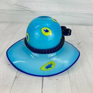 A true conversation starter, this collectible hat-shaped art glass piece demonstrates expert craftsmanship and artistic flair. It retains its original Block Crystal sticker.