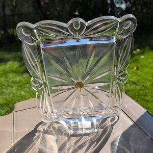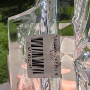 The Block Crystal Tulip Garden Picture Frame is a hand-cut and polished mouth-blown decorative collectible item. This original Art Deco style frame features a romantic Tulip Garden pattern in clear lead crystal, suitable for all occasions. With a photo capacity of 1 and a front-loading photo insertion type, this 5 x 7 inch frame is perfect for displaying a single portrait-sized photo. The ornate design, polished finish, and free-standing mounting make it a beautiful addition to any adult's home decor, adding a touch of elegance to any space. Made in Poland in the 21st century, this unique piece weighs 3.12 lbs.