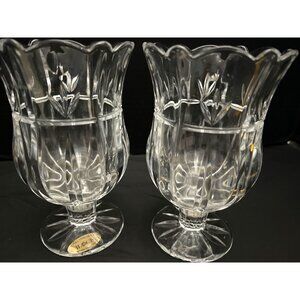 Block Heavy Lead Crystal Flower Vases or Candle Holders Set of 2 Vintage