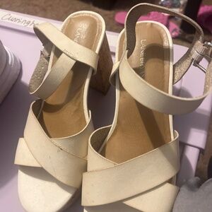 Cream block heel