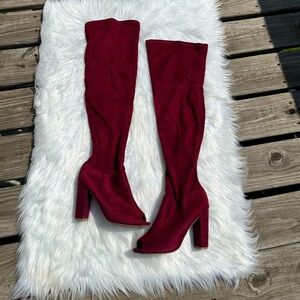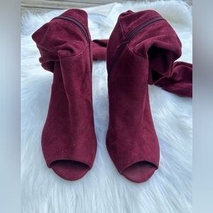 Block Heel Open Toe Knee-High Faux Surde Boots Size 7.5
