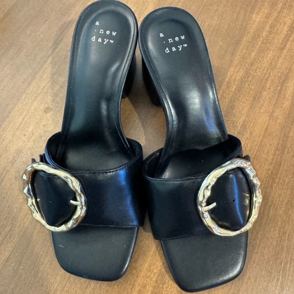 Block heels with gold buckle. Never worn. No tags
