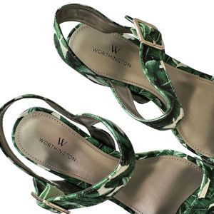 Block High Heel Sandals Worthington Baldwin Green Leaf Print Sandals Womens 10
