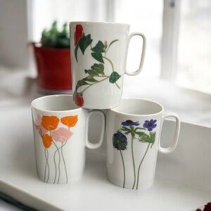 Block Langenthal- Henry Evans Floral Portrait - 3 Porcelain Mugs- Switzerland