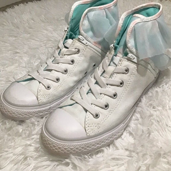 Ruffled converse in size 7W. In good condition, worn a handful of times and very clean, just a tiny specks of dirt. Will accept reasonable offers only!