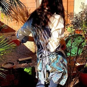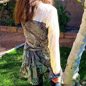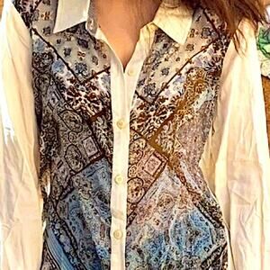 Block Print Tunic Button Shirt. High quality Viscose fabric. Button front wrap belt. NWT