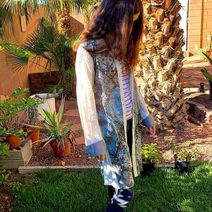 summer, pretty, clean beauty, summer, coastal, beach, resort, vacation, spring, California, romantic, travel, spell, free, spell, black halo, love shack, girly, cottagecore, yoga, 70's, people, boho, bohemian, Cardigan, coverup causal contemporary block print, pretty little liars
