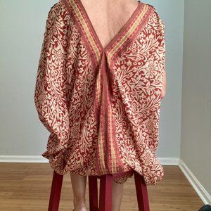 Authentic Indian Block Print Caftan. Maxi length. V-neck. Peek-a-boo shoulders. No pockets