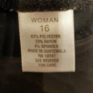 Women's Black Dress Pants. No pockets or zippers. Does have a tummy lining. Size 16, Waist band is 20 inches seam to seam, and the inseam is 31 inches