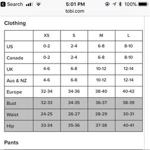 New With Tags!!! I bought this skirt for school on final sale, and once it arrived, I decided it wasn’t for me. Check out the attached sizing from Tobi.com to see if it will suit you!