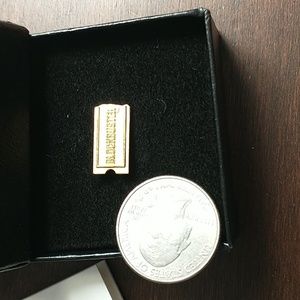 NIB never-worn Blockbuster logo matte logo tack pin. In original box with blank note card.