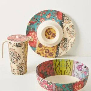⭐️ Blockprint Bamboo Melamine Chip & Dip Girly Artsy Platter Party Bowl Plate