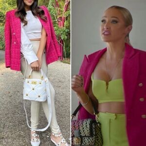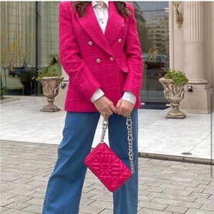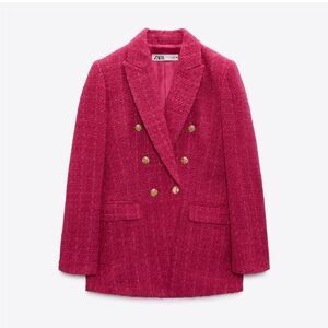 Blogger Fave Zara Textured Tweed Fuschia Pink Double Breasted Blazer Size XS