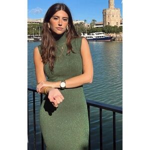 Blogger Favorite Zara Metallic Thread Knit Dress Green Small