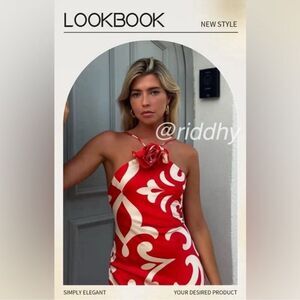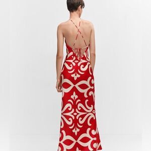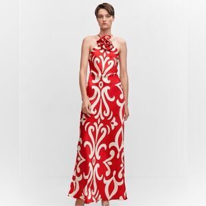 Blogger favorite red satin halter dress with floral applique (brand Mango)