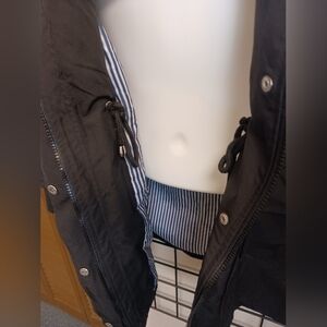 Bloggerlove Black Rain Jacket with Striped Navy Lining SIZE M