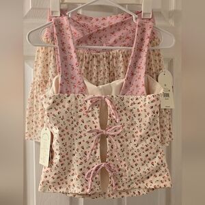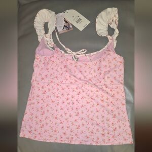Blogilates medium cream and pink tie back corset top. NWT