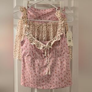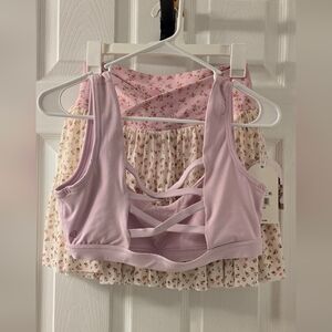 Blogilates medium floral top with ruffles and crisscross front. NWT.