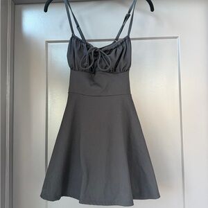 Stylish black halter mini dress with a flared skirt. Perfect for casual outings.
