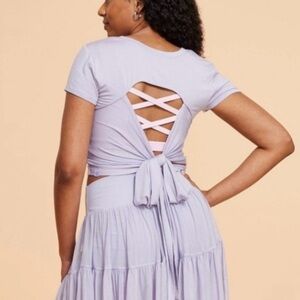 Blogilates Reversible Bow Back Short Sleeve Tee Lilac Purple Size M