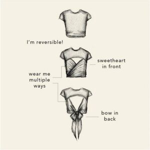 Designed for layering, this lightweight crewneck short sleeve tee features an elegant wrap bow detailing and a sweetheart in front when reversed, allowing it to be worn in 4 unique ways. Tie it in the back, cross the back to tie it in the front,