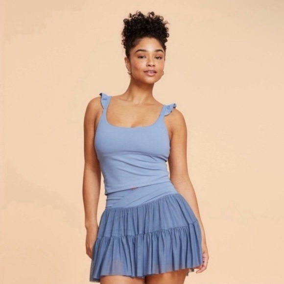 Blogilates Romantic Ruffle Tank Top - Steel Blue