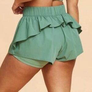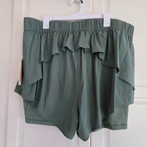 Blogilates Ruffle Woven Mid-Rise Shorts 3" - Hedge Green Women's Size 2X NEW