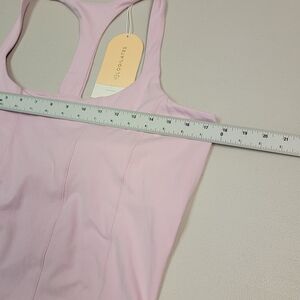 This blogilates top features a stylish racerback design with wide straps, perfect for activewear. Made from a stretchy, athletic material, it offers comfort and flexibility during workouts. The soft pink color adds a touch of elegance to your fitness wardrobe.