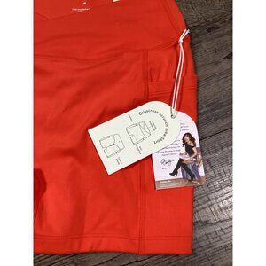 Blogilates Womens Scrunch Bike Short Spicy Orange Crisscross Workout Size S NEW