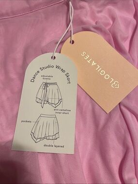 Pink wrap around skirt with built in shorts, has pockets. NWT