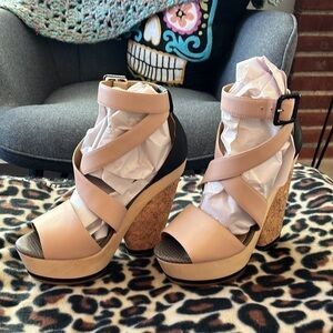 Blonde Ambition Black and Tan Y2K Heels Boho Sandals. Beautiful construction.
