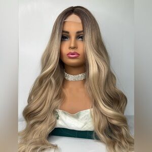Transform your look with this Long Ombre Blonde Lace Front Wig. Designed with a natural dark brown root that blends seamlessly into sun-kissed blonde waves, this wig offers a flawless and realistic finish. The lace front hairline creates a natural appearance, perfect for both daily wear and special occasions.
