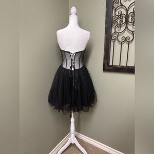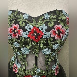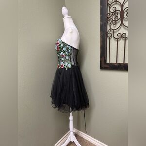 Blonde Nites embroidered mesh strapless sweetheart dress with corset