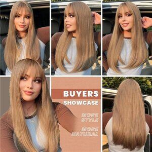 Blonde Wig With Bangs For Women Long Straight Wigs Barbie wig Synthetic