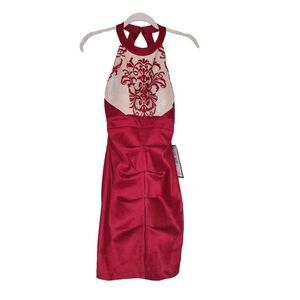 Blondi nites Stacy Sklar fitted halter lace overlay cocktail dress NWT SIZE 1