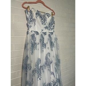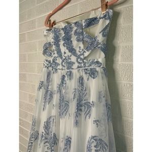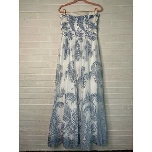 Blondie Nights Strapless Glitter Mesh Evening Dress