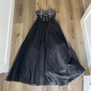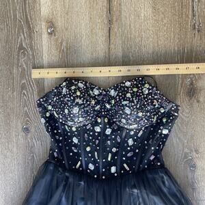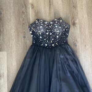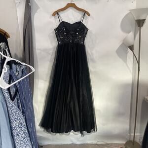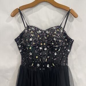 Blondie Niles Sz 9 Corset Gem Mesh Black Maxi Dress Event Sleeveless Romantic