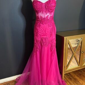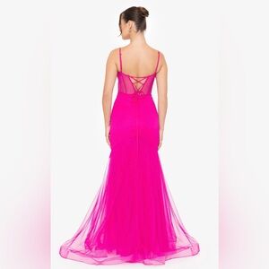 Blondie Nites Corset Mermaid Dress Formal Gown Prom Hot Pink Fuchsia Size 15