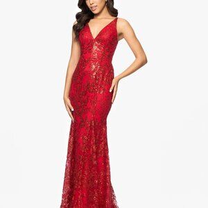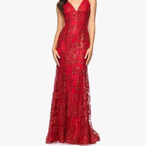 Blondie Nites Juniors' Glitter-Floral V-Neck Gown Red Size 9