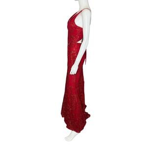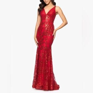 Blondie Nites Juniors' Glitter-Floral V-Neck Gown Red Sz 3