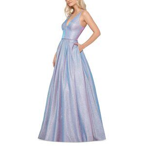 Blondie Nites Juniors' Metallic Plunge-Neck Sleeveless Gown Size 1